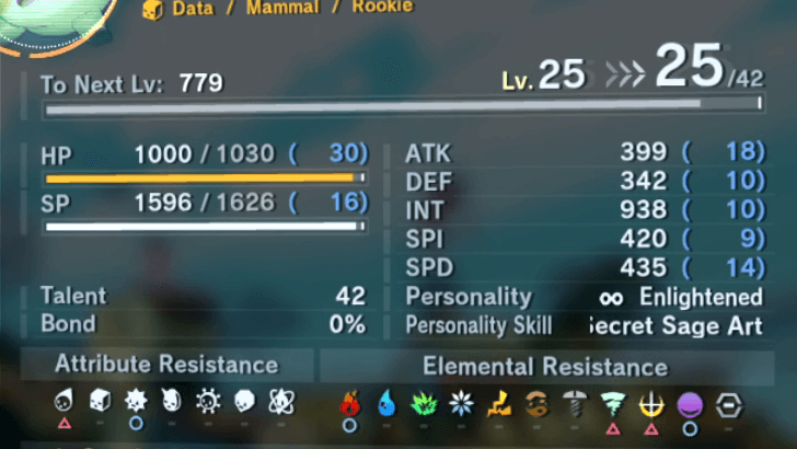 La personalidad influye en las estadísticas de los Digimon a medida que suben de nivel, así como en su habilidad . Asegúrate de hablar con tus Digimon para influir en su personalidad y adaptarla a tu rol en el equipo.